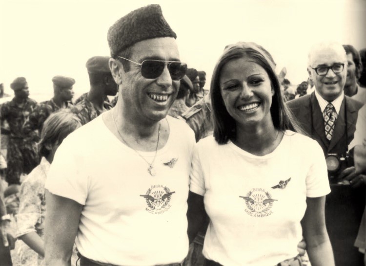 Carmo Jardim, filha de Jorge Jardim, aqui homenageada pelo General Kaúlza de Arriaga, na altura chefe das tropas portuguesas em Moçambique, pelo seu trabalho no para-quedismo.