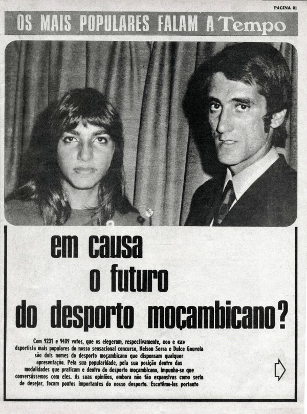 Nelson Serra (Basquetebol, Sporting Clube de Lourenço Marques) e Dulce Gouveia (Natação, Desportivo de Lourenço Marques) foram distinguidos como os atletas Mais Populares do ano de 1972, numa iniciativa promovida pela revista Tempo. A eleição baseava-se na votação dos leitores, refletindo o reconhecimento público do talento e carisma de ambos no panorama desportivo moçambicano da época.